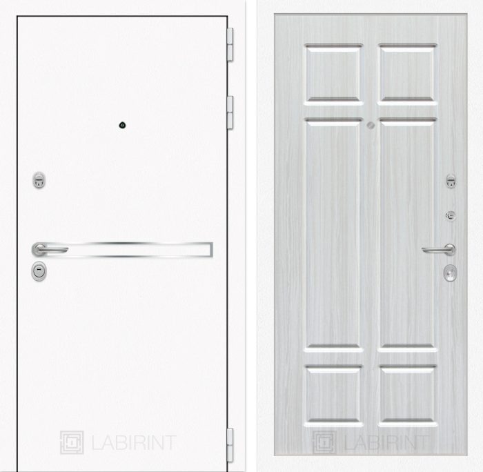 Отделка снаружи=’Металл с покрытием «Шагрень» белая, зеркальная вставка из нержавеющей стали’