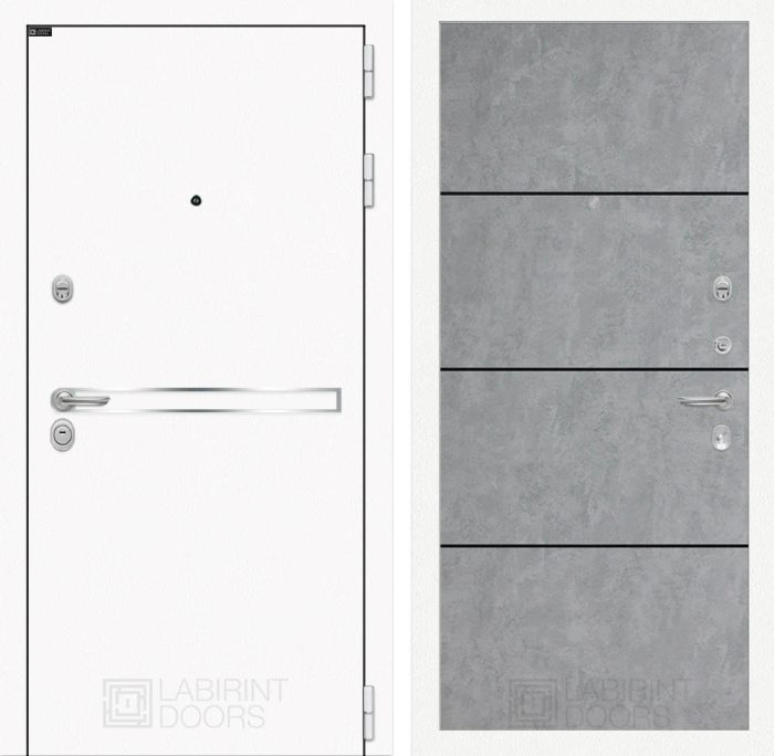 Входная дверь Лайн WHITE 25 — Бетон светлый, черный молдинг