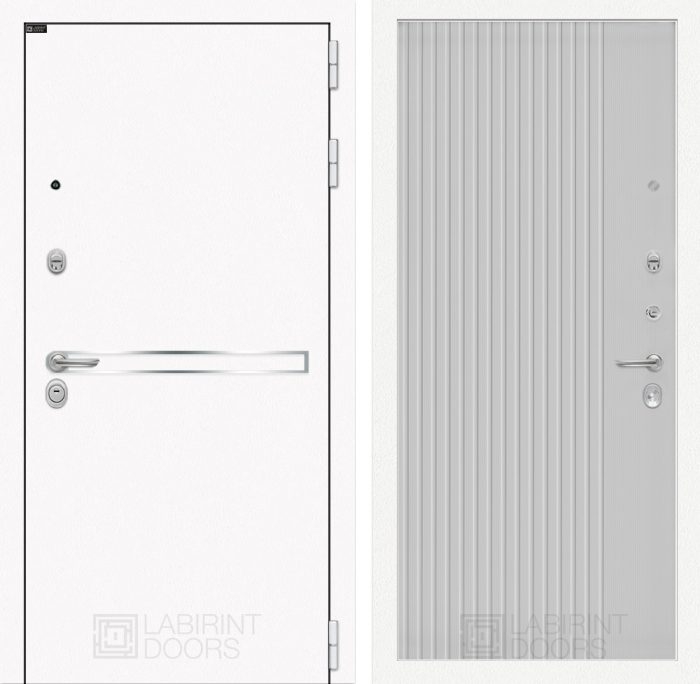 Отделка снаружи=’Металл с покрытием «Шагрень» белая, зеркальная вставка из нержавеющей стали’