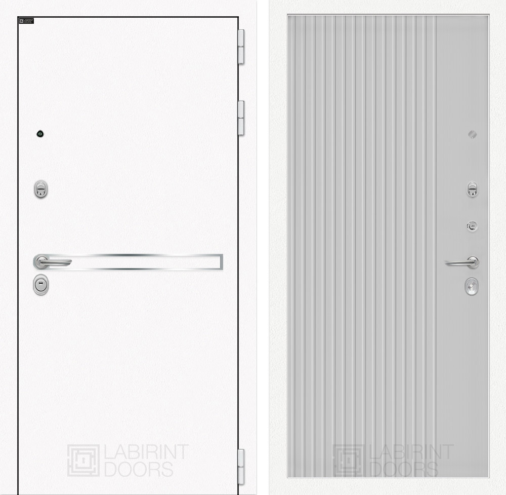 Отделка снаружи: Металл с покрытием «Шагрень» белая, зеркальная вставка из нержавеющей стали