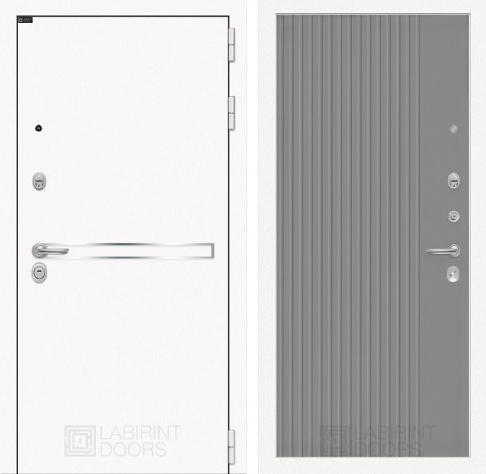 Отделка снаружи=’Металл с покрытием «Шагрень» белая, зеркальная вставка из нержавеющей стали’