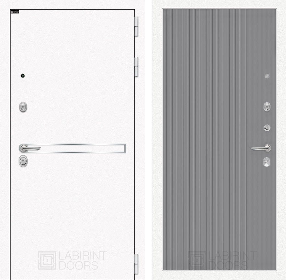 Отделка снаружи: Металл с покрытием «Шагрень» белая, зеркальная вставка из нержавеющей стали