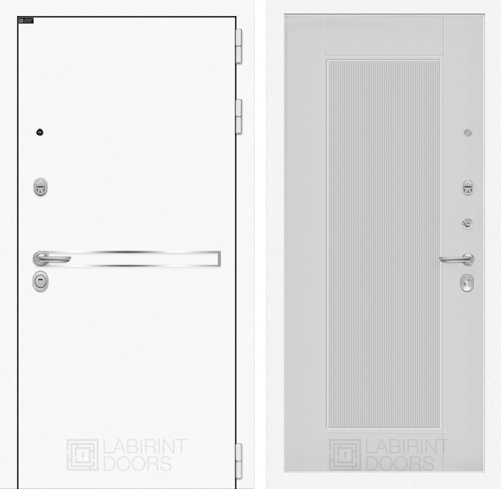 Отделка снаружи: Металл с покрытием «Шагрень» белая, зеркальная вставка из нержавеющей стали