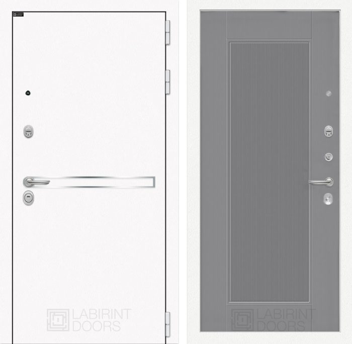 Входная дверь Лайн WHITE 30 — Серый рельеф софт