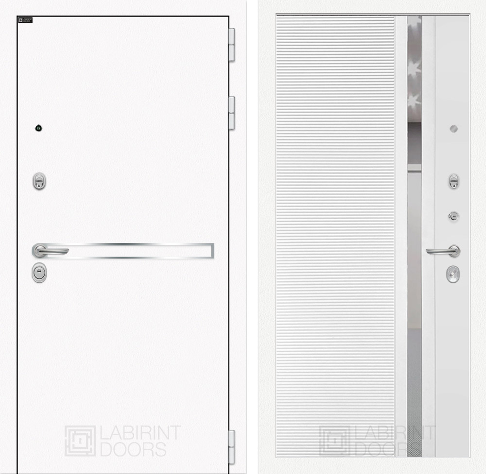 Отделка снаружи: Металл с покрытием «Шагрень» белая, зеркальная вставка из нержавеющей стали