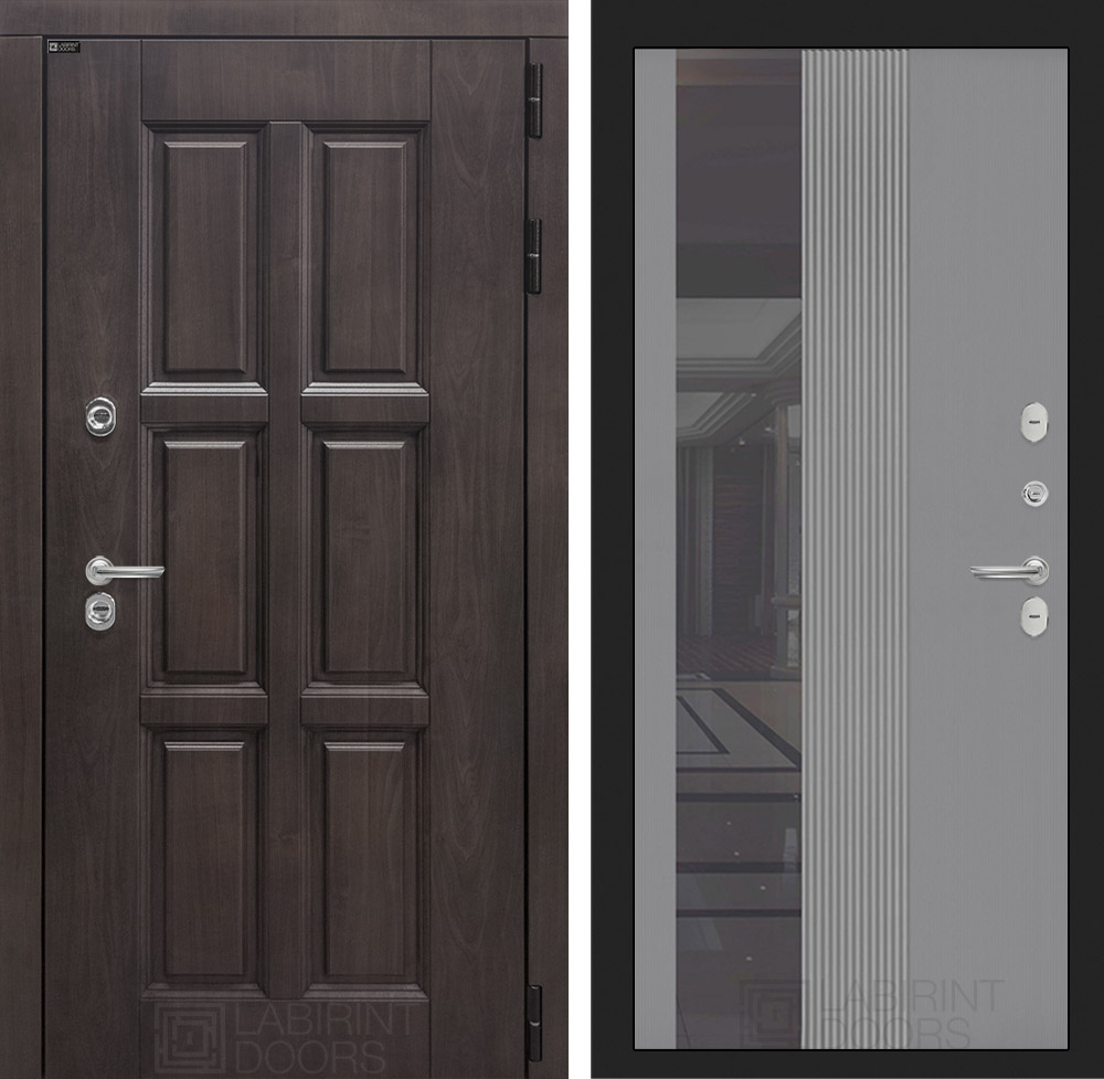 Внутренняя отделка: Фрезерованная МДФ панель 10 мм с тонированным зеркалом (ширина 244 мм), цвет «Серый рельеф софт»