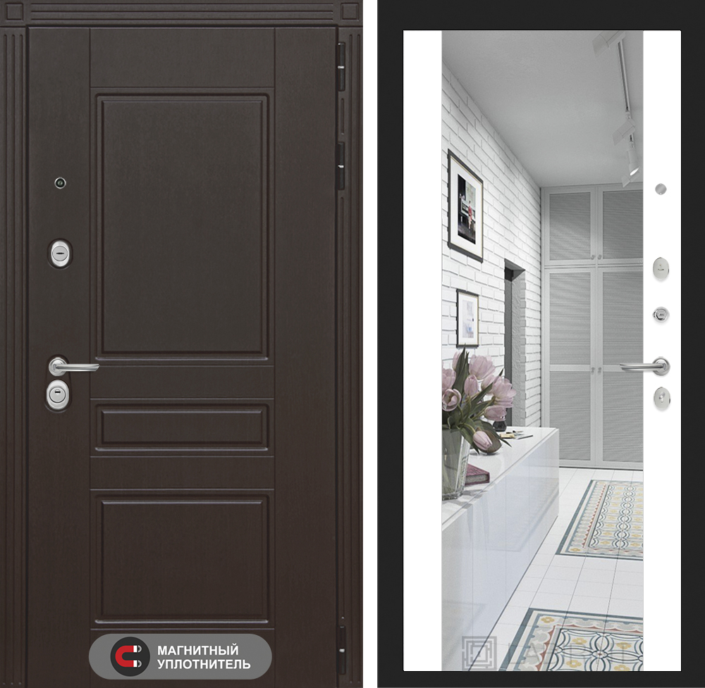 Внутренняя отделка: Декоративная MDF панель 12 мм с широким зеркалом, цвет «Белый софт» (без текстуры)