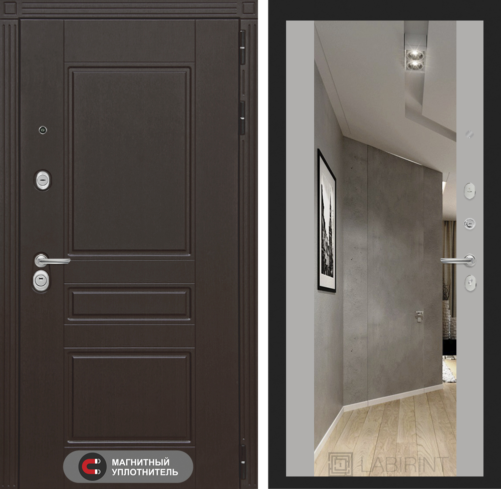 Внутренняя отделка: Декоративная MDF панель 12 мм с широким зеркалом, цвет «Софт Грей» (без текстуры)