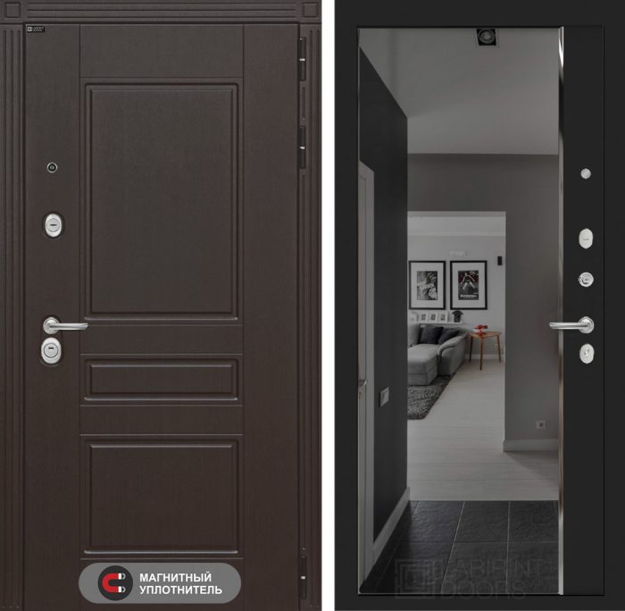 Отделка снаружи=’Декоративная MDF панель 10 мм с фрезерованным наличником, цвет «Венге»‘
