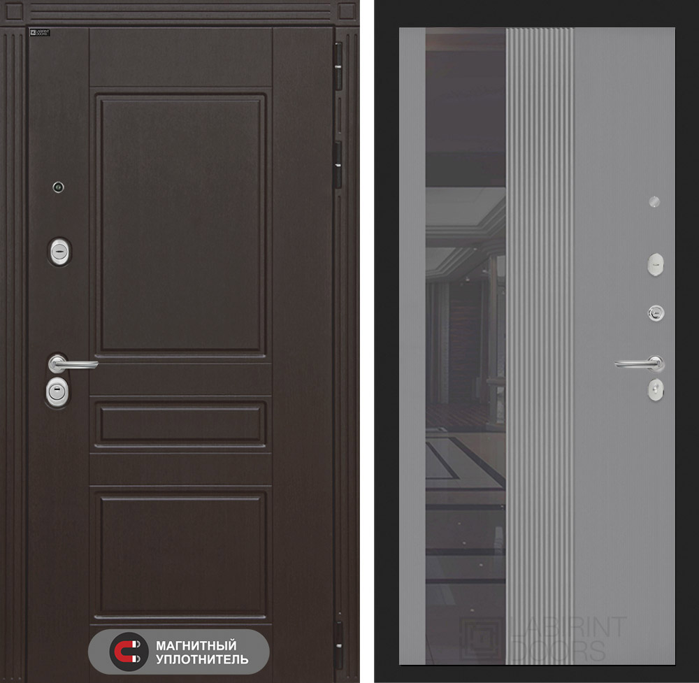 Внутренняя отделка: Фрезерованная МДФ панель 10 мм с тонированным зеркалом (ширина 244 мм), цвет «Серый рельеф софт»
