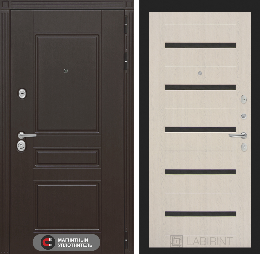 Отделка снаружи: Декоративная MDF панель 10 мм с фрезерованным наличником, цвет «Венге»