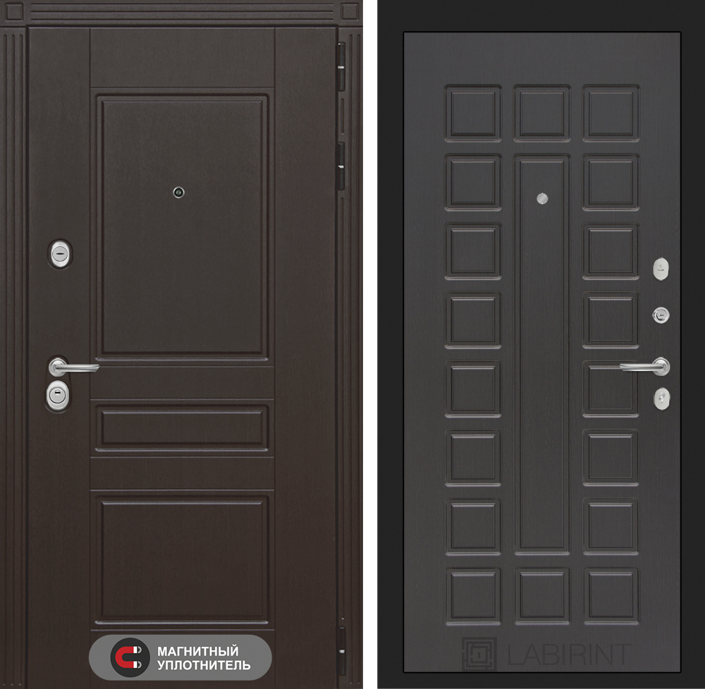 Отделка снаружи: Декоративная MDF панель 10 мм с фрезерованным наличником, цвет «Венге»