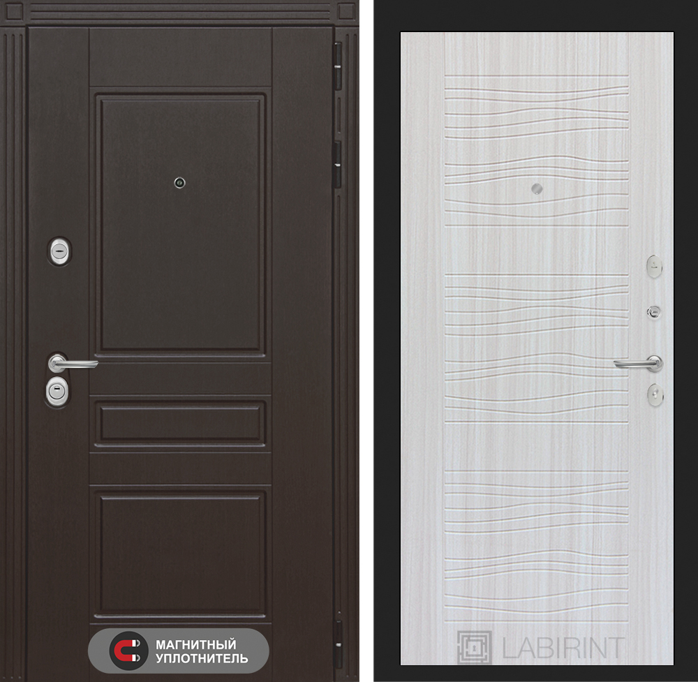 Отделка снаружи: Декоративная MDF панель 10 мм с фрезерованным наличником, цвет «Венге»