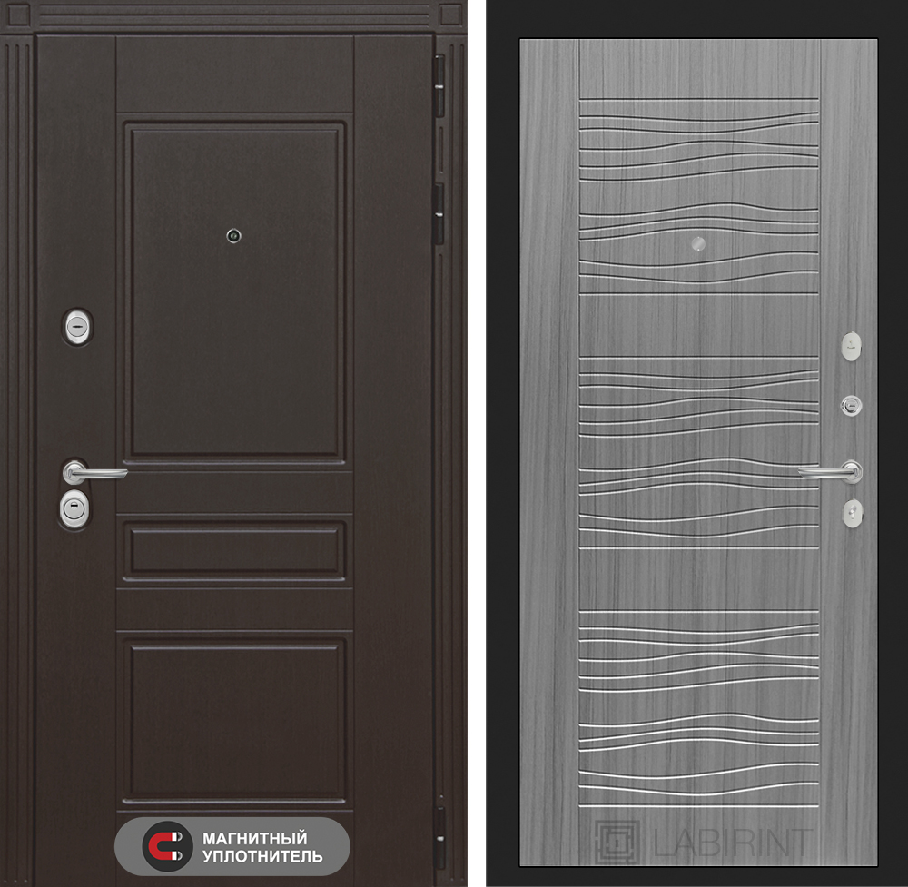 Отделка снаружи: Декоративная MDF панель 10 мм с фрезерованным наличником, цвет «Венге»