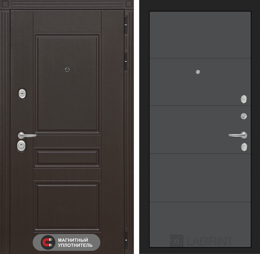 Отделка снаружи: Декоративная MDF панель 10 мм с фрезерованным наличником, цвет «Венге»