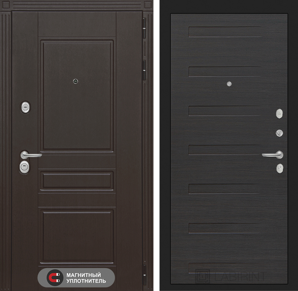 Отделка снаружи: Декоративная MDF панель 10 мм с фрезерованным наличником, цвет «Венге»
