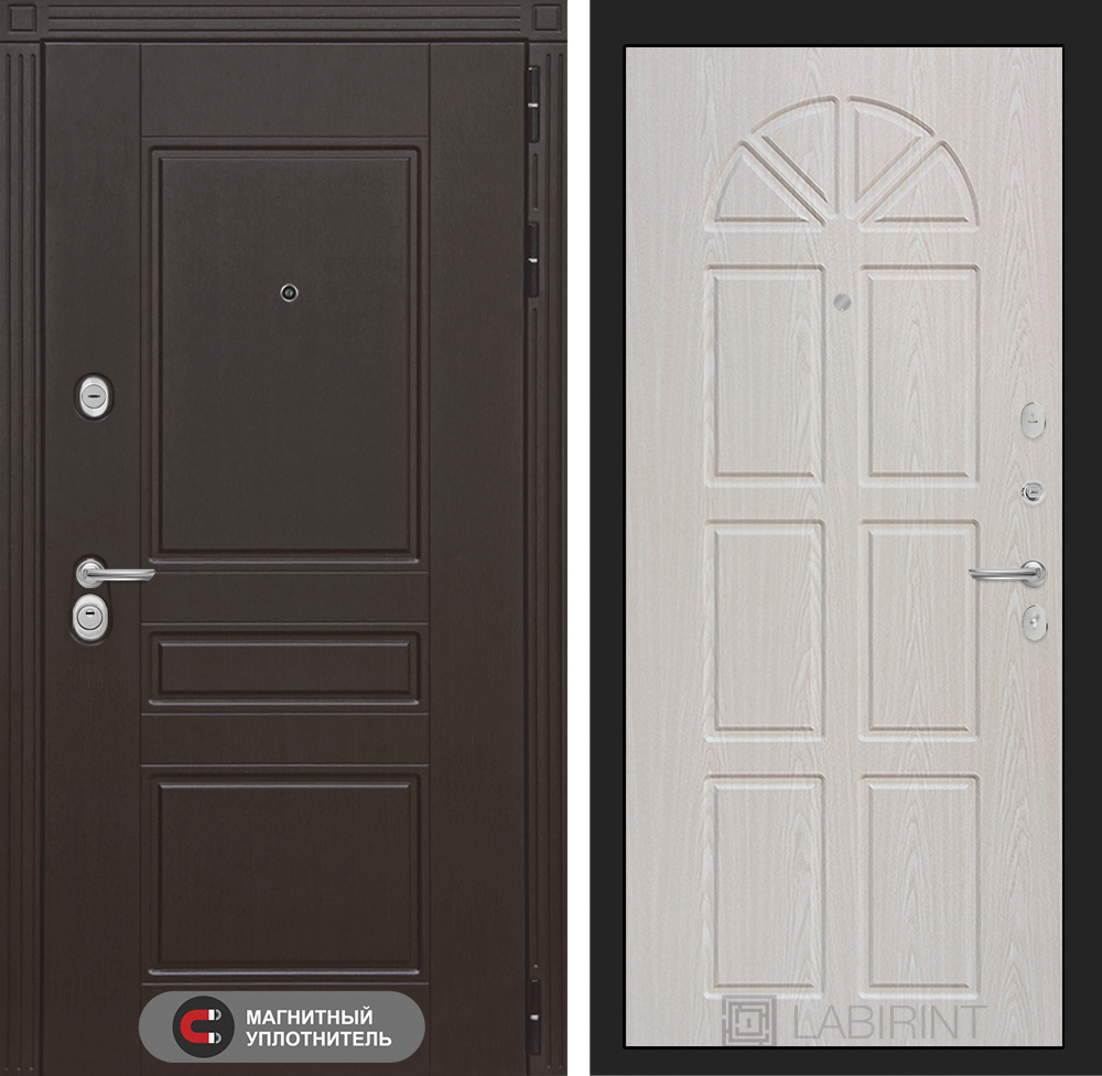 Отделка снаружи: Декоративная MDF панель 10 мм с фрезерованным наличником, цвет «Венге»