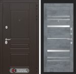 Главная Двери в квартиру Мегаполис Входная дверь Мегаполис 20 — Бетон темный, зеркальные вставки