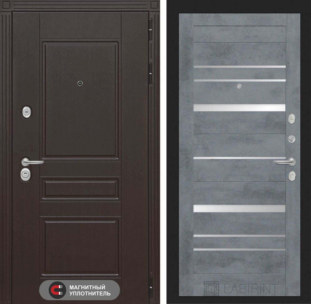 Отделка снаружи: Декоративная MDF панель 10 мм с фрезерованным наличником, цвет «Венге»