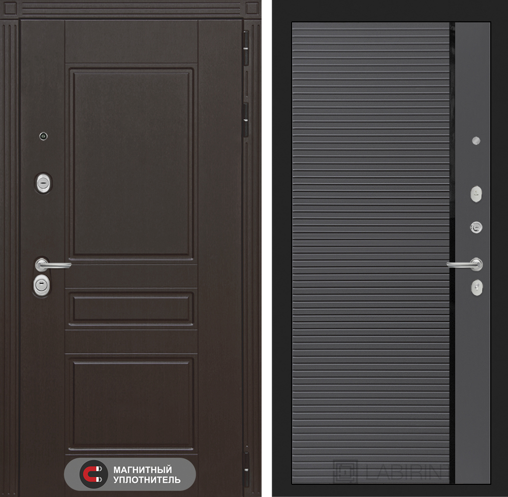 Главная Двери в квартиру Мегаполис Входная дверь Мегаполис 22 — Графит софт, черная вставка