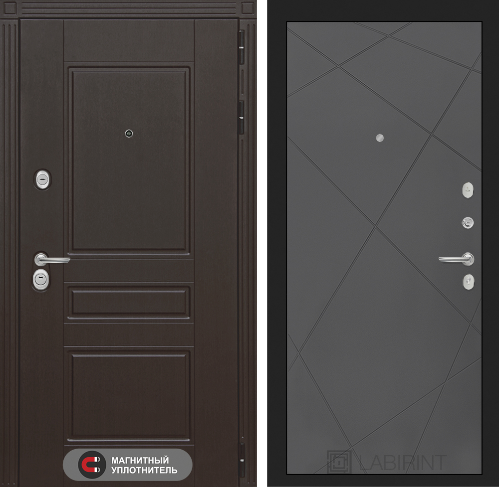 Отделка снаружи: Декоративная MDF панель 10 мм с фрезерованным наличником, цвет «Венге»