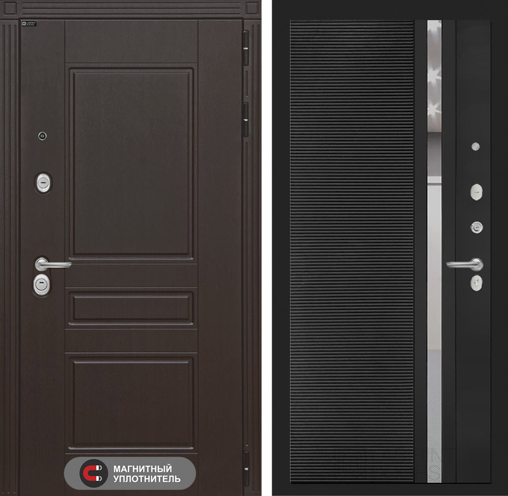 Отделка снаружи=’Декоративная MDF панель 10 мм с фрезерованным наличником, цвет «Венге»‘