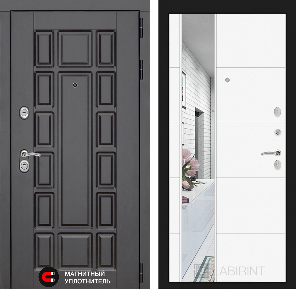Внутренняя отделка: Декоративная MDF панель 12 мм с Зеркалом (ширина 230 мм), цвет «Белый софт»