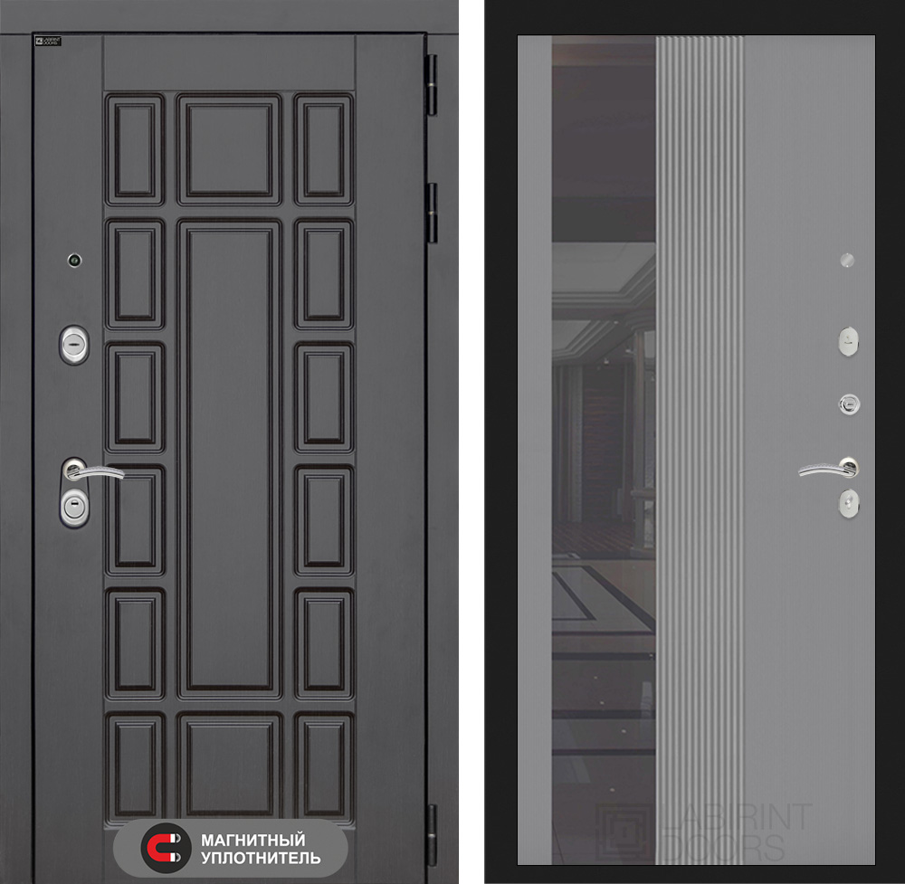Внутренняя отделка: Фрезерованная МДФ панель 10 мм с тонированным зеркалом (ширина 244 мм), цвет «Серый рельеф софт»