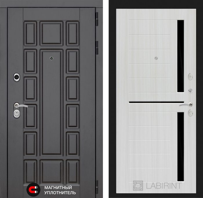 Главная Двери премиум Нью-Йорк Входная дверь Нью-Йорк 02 — Сандал белый, стекло черное