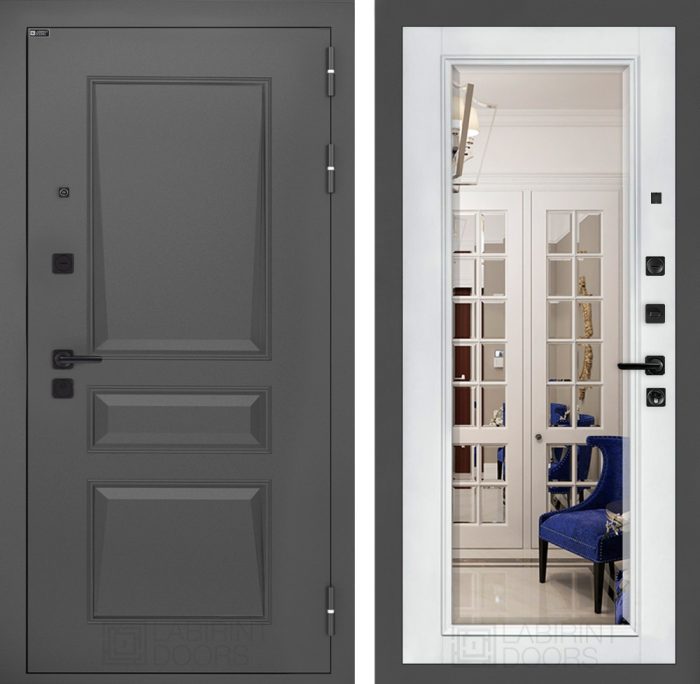 Входная дверь Орлеан с Зеркалом Фацет — Белый софт