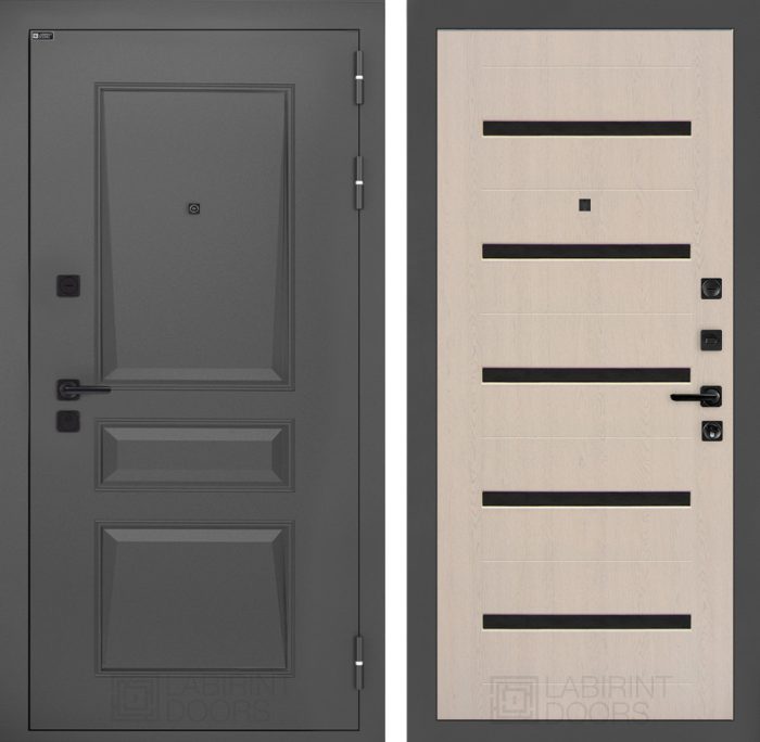 Полный комплект=’Фурнитура в черном цвете: Броненакладка врезная, накладка со шторкой, глазок , дверная ручка, ночная задвижка. Цилиндр ключ-вертушка (производитель не регламентируется), регулируемый эксцентрик.’