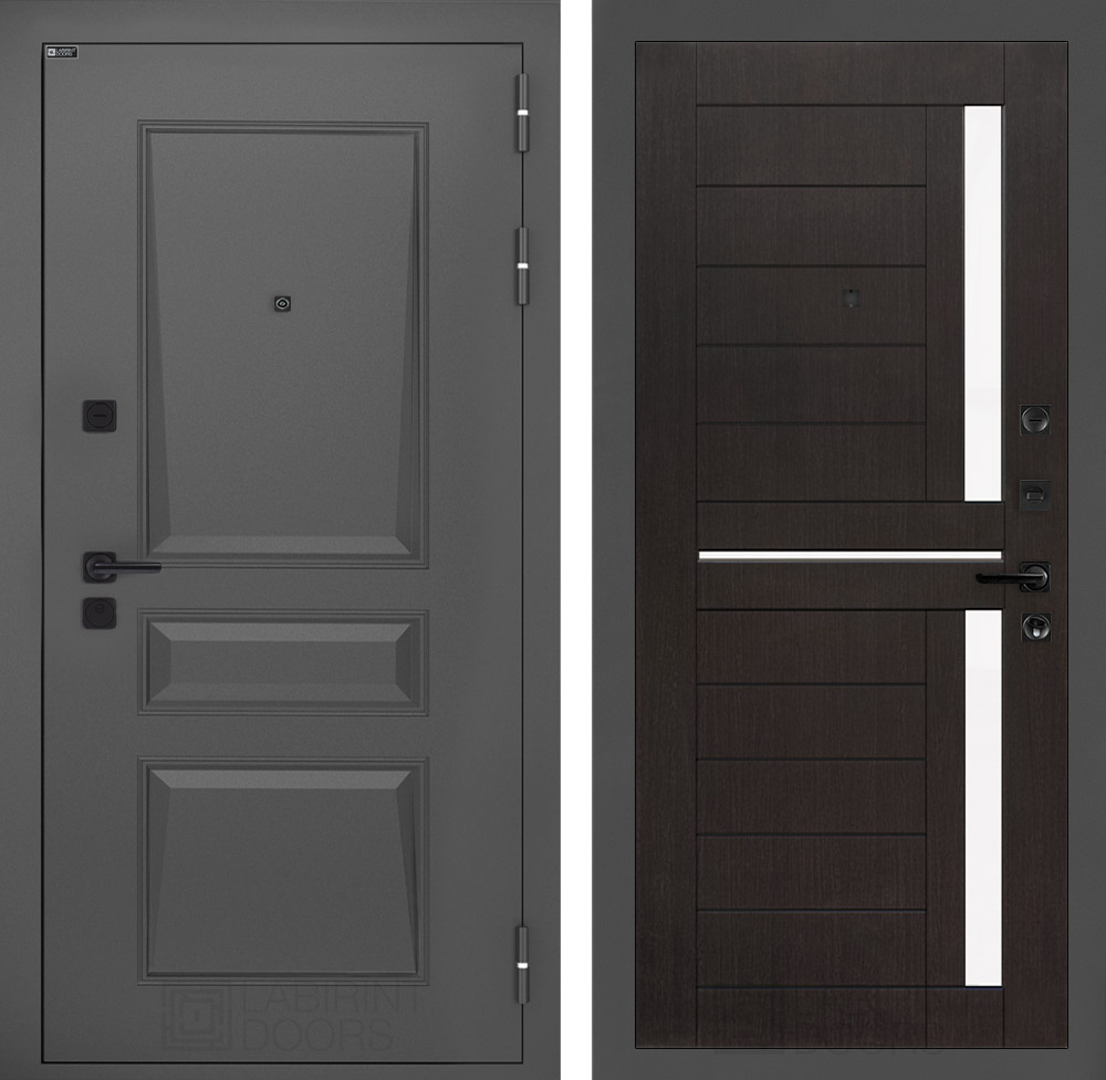 Полный комплект: Фурнитура в черном цвете: Броненакладка врезная, накладка со шторкой, глазок , дверная ручка, ночная задвижка. Цилиндр ключ-вертушка (производитель не регламентируется), регулируемый эксцентрик.’