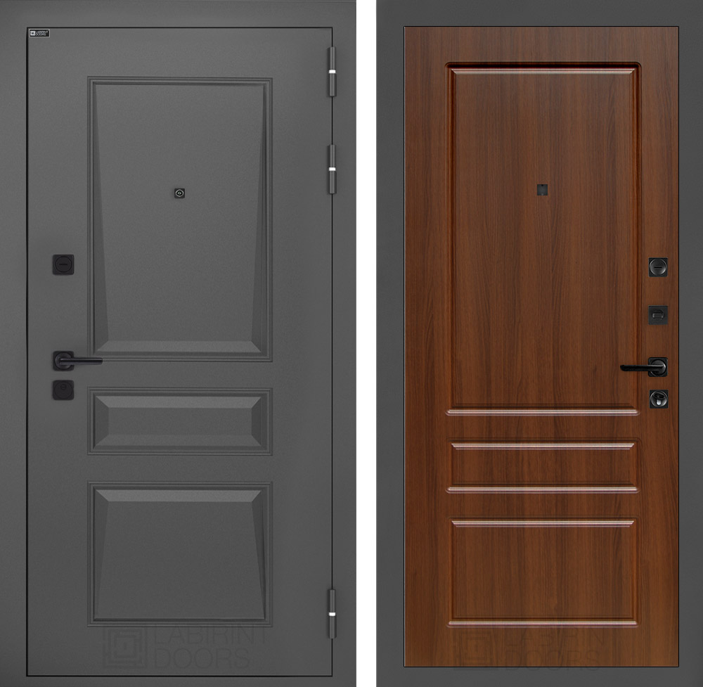 Полный комплект: Фурнитура в черном цвете: Броненакладка врезная, накладка со шторкой, глазок , дверная ручка, ночная задвижка. Цилиндр ключ-вертушка (производитель не регламентируется), регулируемый эксцентрик.’