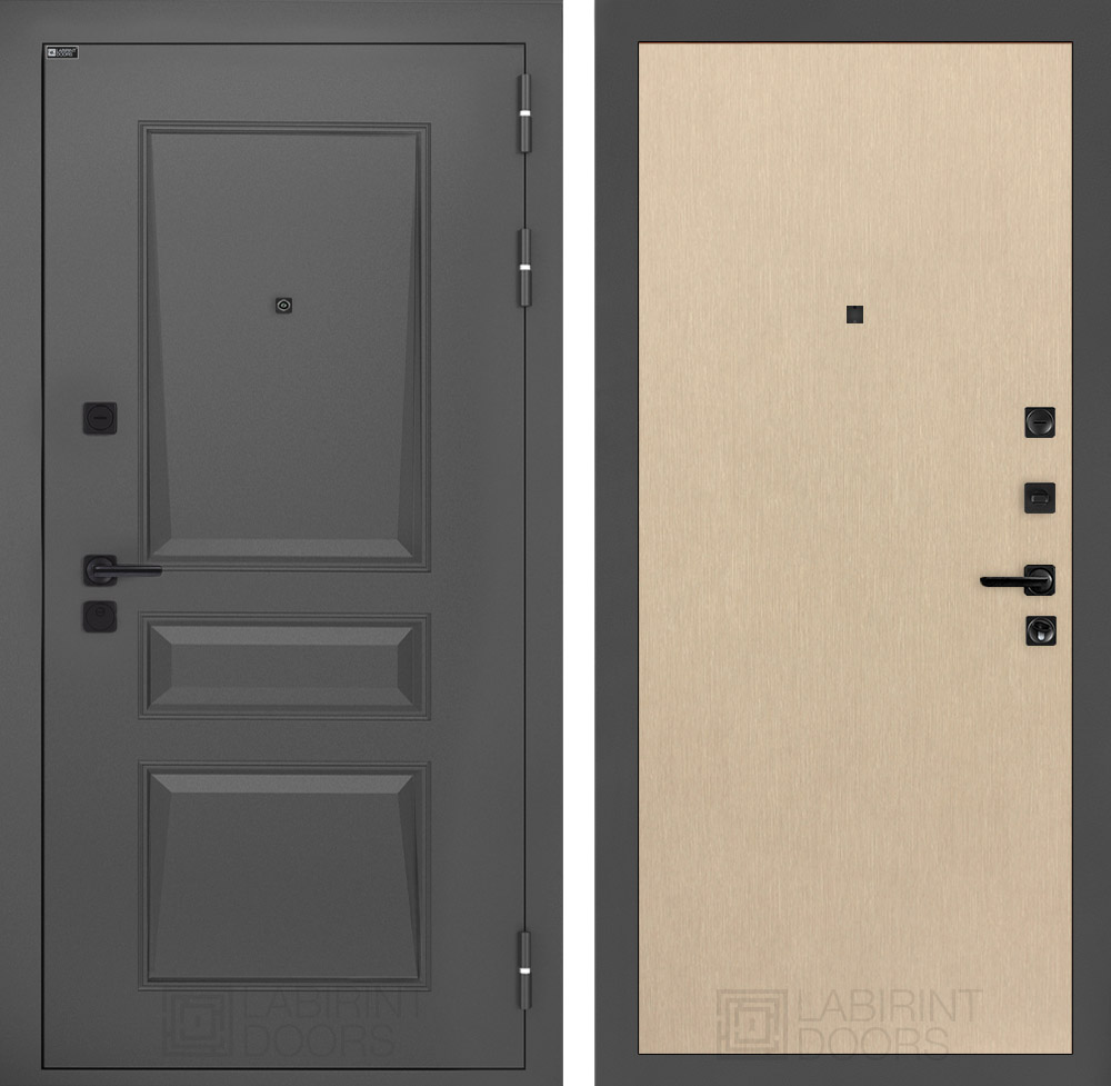 Полный комплект: Фурнитура в черном цвете: Броненакладка врезная, накладка со шторкой, глазок , дверная ручка, ночная задвижка. Цилиндр ключ-вертушка (производитель не регламентируется), регулируемый эксцентрик.’