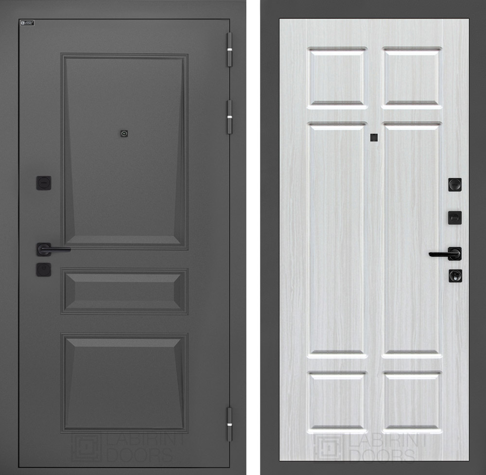 Полный комплект: Фурнитура в черном цвете: Броненакладка врезная, накладка со шторкой, глазок , дверная ручка, ночная задвижка. Цилиндр ключ-вертушка (производитель не регламентируется), регулируемый эксцентрик.’