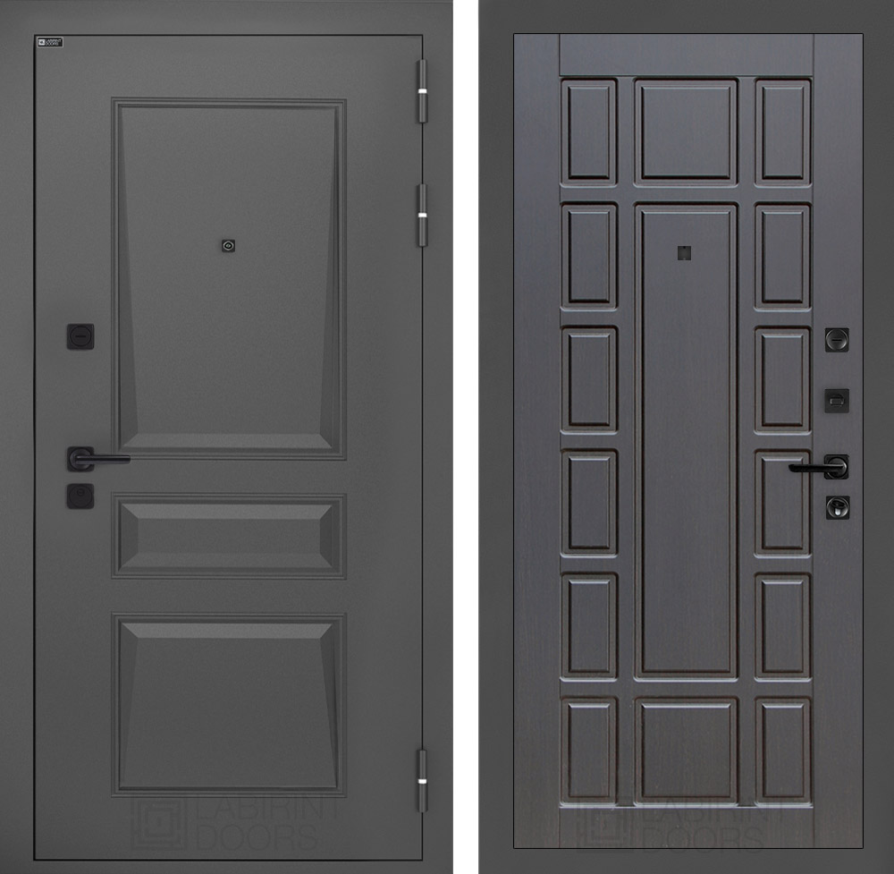 Полный комплект: Фурнитура в черном цвете: Броненакладка врезная, накладка со шторкой, глазок , дверная ручка, ночная задвижка. Цилиндр ключ-вертушка (производитель не регламентируется), регулируемый эксцентрик.’