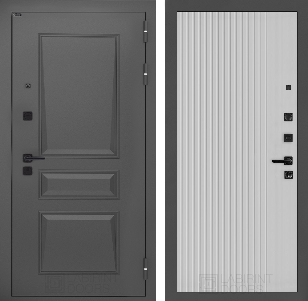 Полный комплект: Фурнитура в черном цвете: Броненакладка врезная, накладка со шторкой, глазок , дверная ручка, ночная задвижка. Цилиндр ключ-вертушка (производитель не регламентируется), регулируемый эксцентрик.’