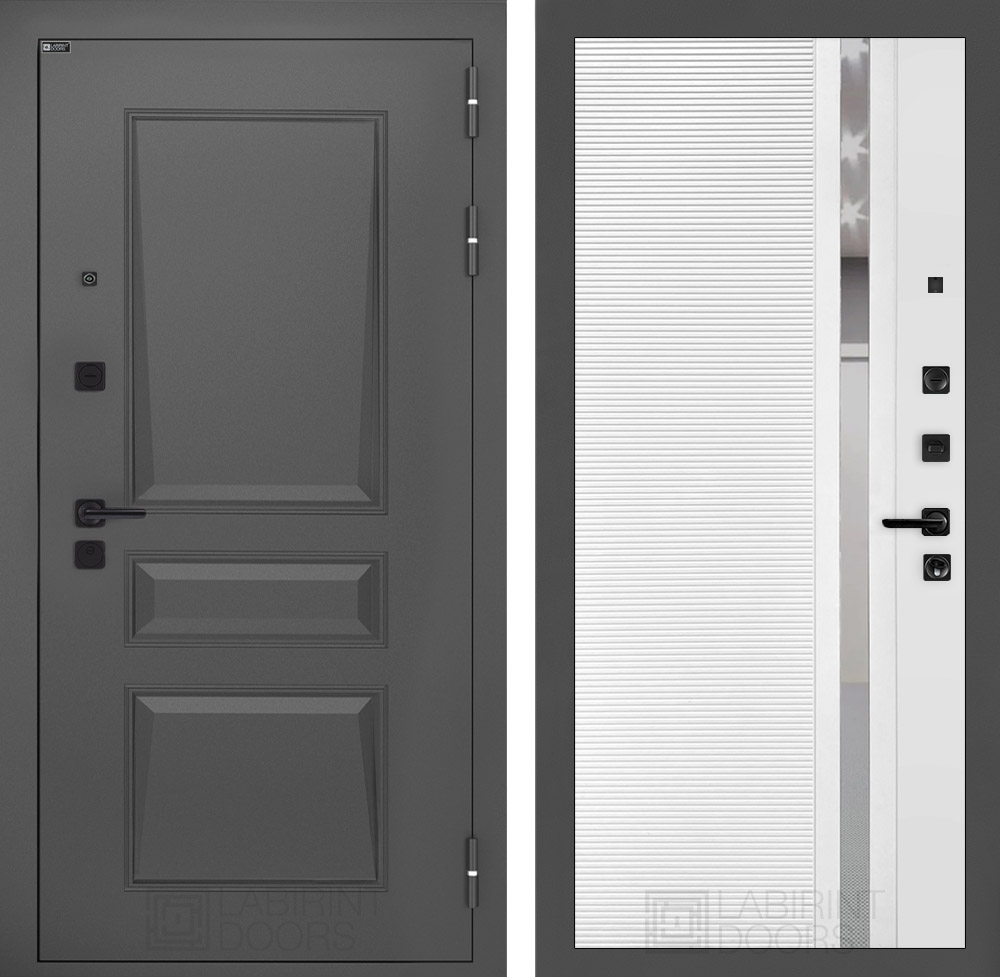Внутренняя отделка: Фрезерованная МДФ панель 10 мм с зеркальной тонированной вставкой 60 мм, цвет «Белый софт»