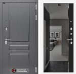 Главная Двери в квартиру Платинум Входная дверь Платинум с зеркалом Панорама с тонировкой — Черный кварц