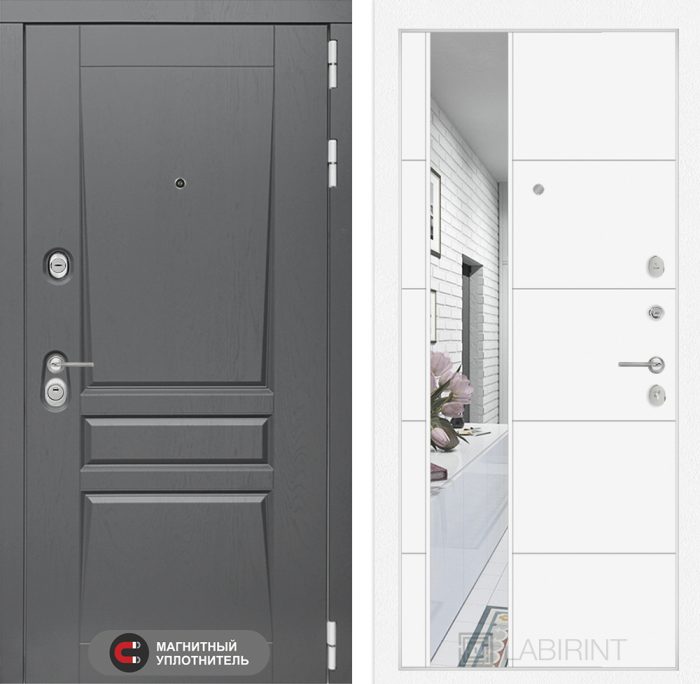 Входная дверь Платинум с Зеркалом Максимум - Белый софт
