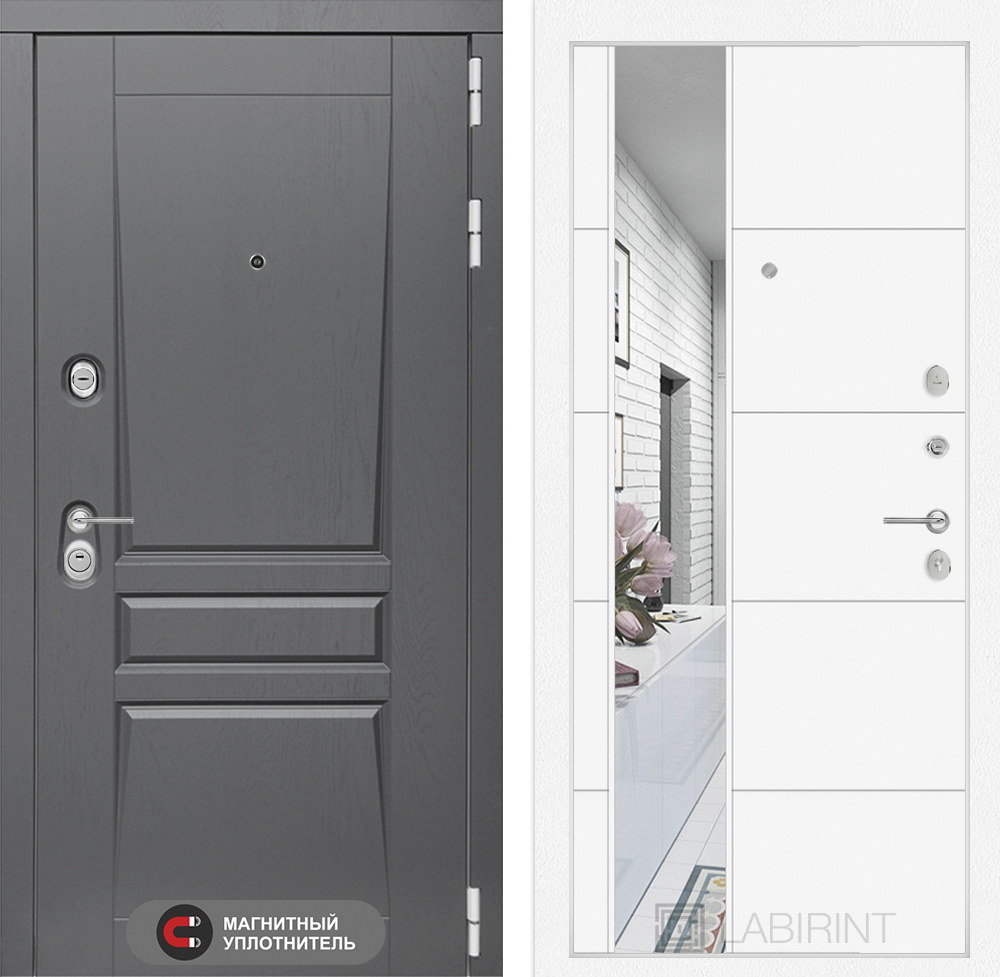 Внутренняя отделка: Декоративная MDF панель 12 мм с Зеркалом (ширина 230 мм), цвет «Белый софт»
