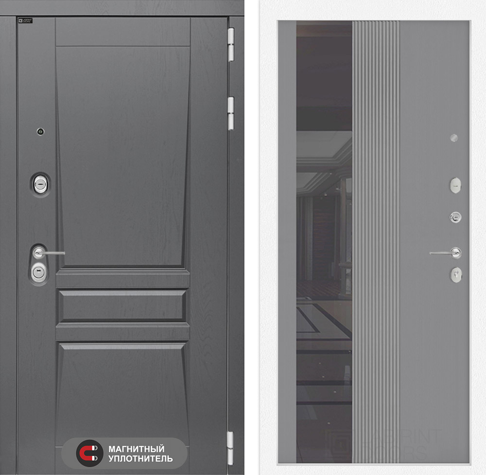 Внутренняя отделка: Фрезерованная МДФ панель 10 мм с тонированным зеркалом (ширина 244 мм), цвет «Серый рельеф софт»