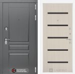 Входная дверь Платинум 01 — Беленый дуб, стекло черное