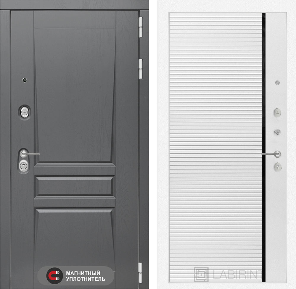 Главная Двери в квартиру Платинум Входная дверь Платинум 22 — Белый софт, черная вставка