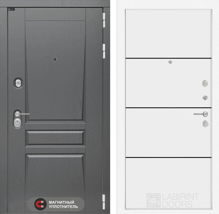 Входная дверь Платинум 25 — Белый софт, черный молдинг