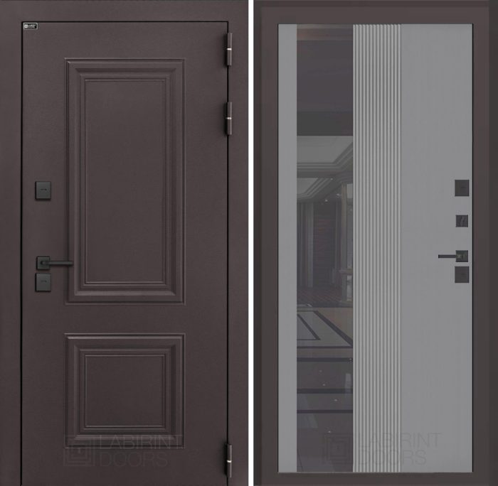 Главная Двери с терморазрывом Полярис Входная дверь Полярис лайт с зеркалом 32 тонированным — Серый рельеф софт