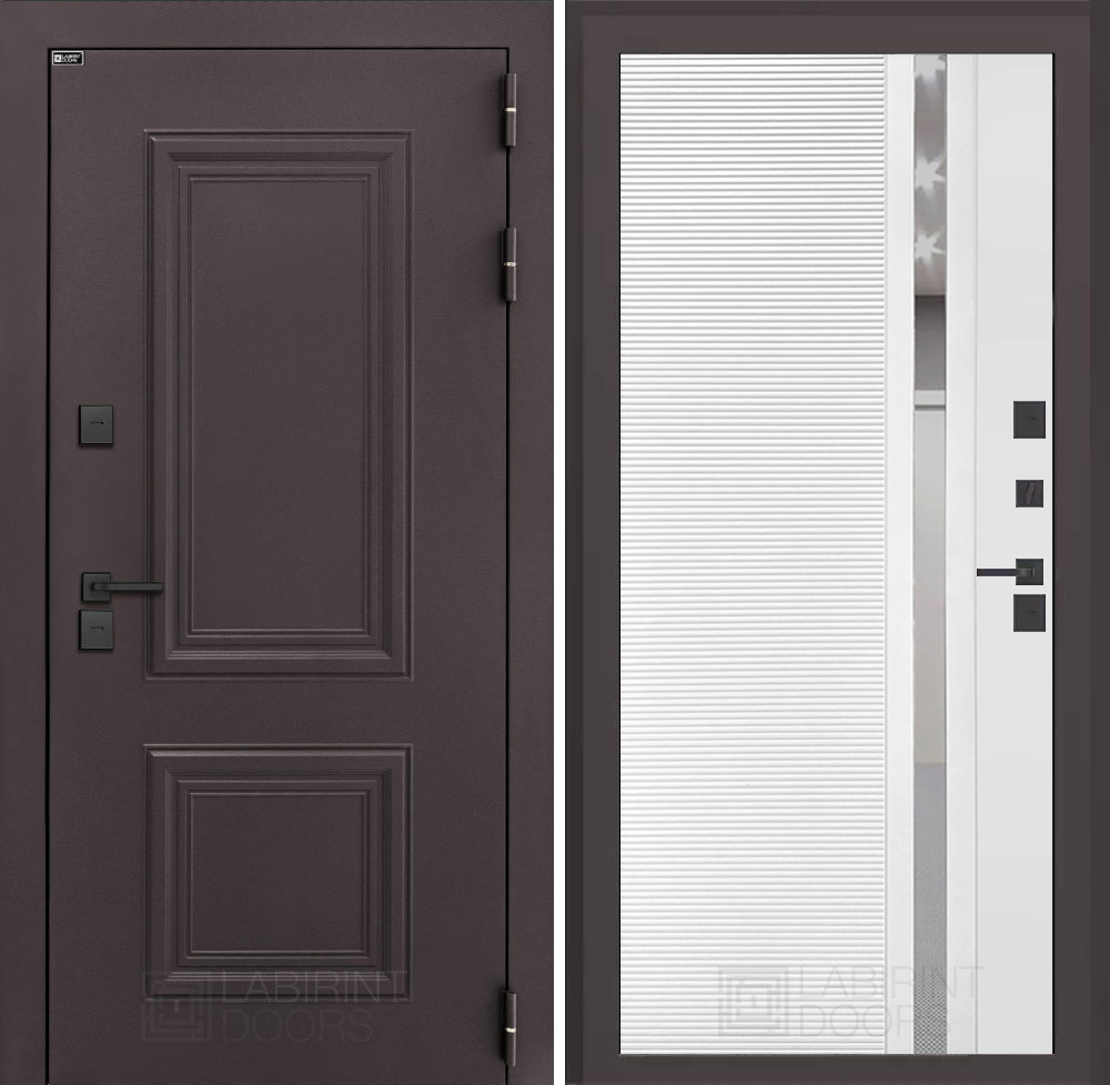 Внутренняя отделка: Фрезерованная МДФ панель 10 мм с зеркальной тонированной вставкой 60 мм, цвет «Белый софт»