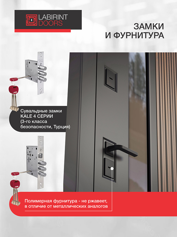 Основной замок: Сувальдный KALE 442L (3-го класса безопасности, Турция)
