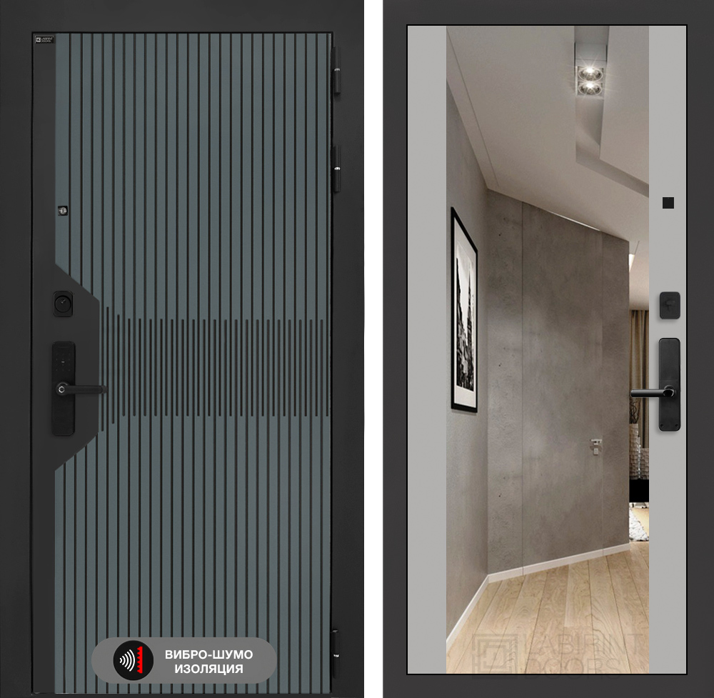 Внутренняя отделка: Декоративная MDF панель 12 мм с широким зеркалом, цвет «Софт Грей» (без текстуры)