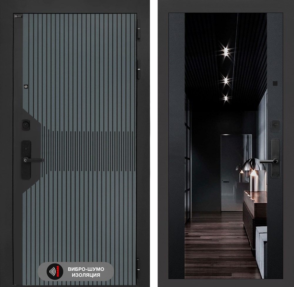 Внутренняя отделка: Декоративная MDF панель 16 мм с Зеркалом тонированным графит, цвет «Черный кварц»
